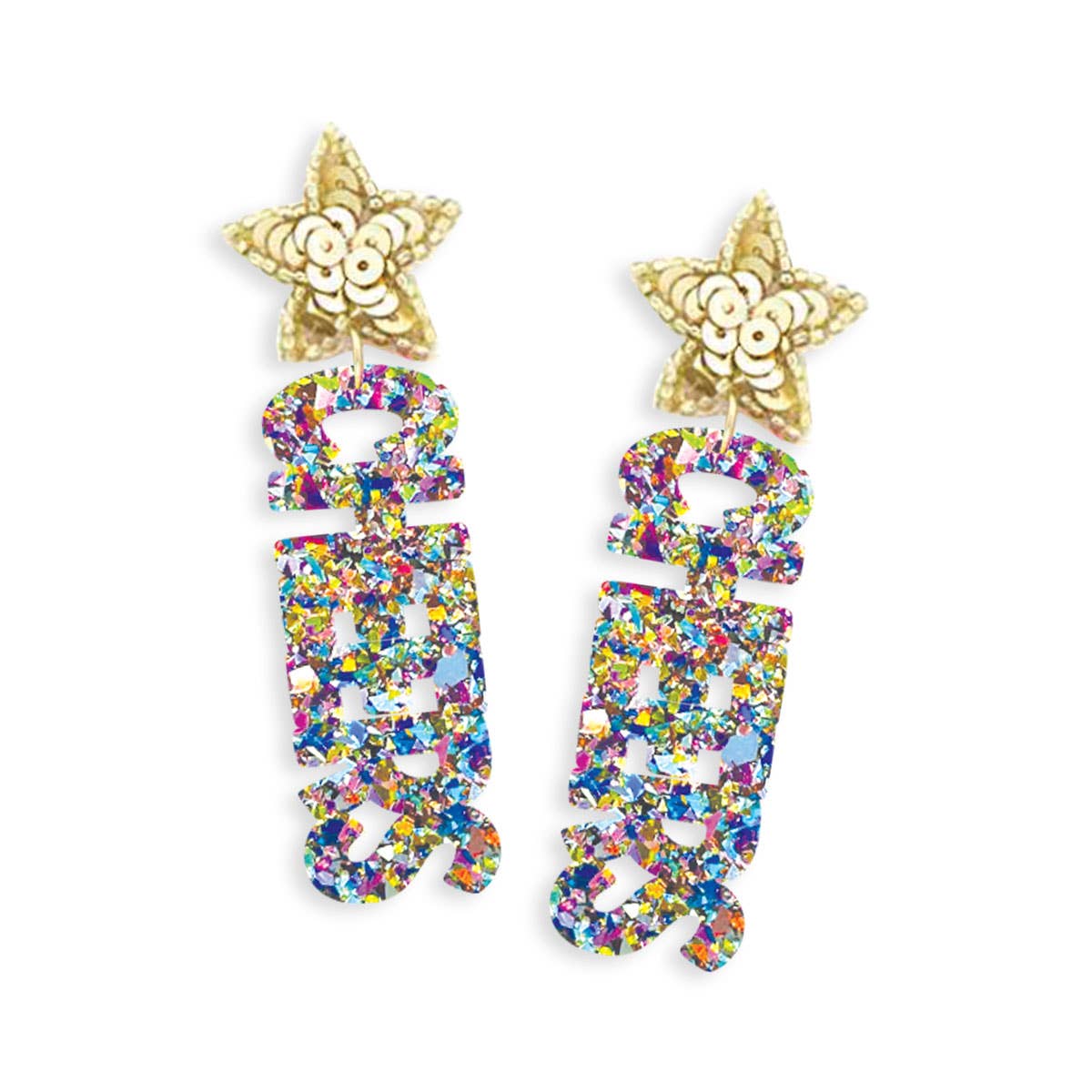 Multi Glitter Cheers Earrings #ACE-896STR-CHEER-MLTGLT