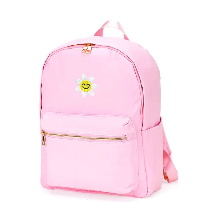 Whether this Backpack is for school or travel, it is the perfect combination of fun and functional! The adjustable shoulder straps make this backpack super easy to carry and it is a breeze to find just the right place for everything in the large interior compartment and exterior pocket. 11” L x 5” W x 13” H Water Resistant Twill Nylon Embroidered Design Gold Plated Metal Interior Lining Interior Zipper Pocket Outside Zipper Pocket Two Outside Open Pockets Adjustable Comfort Straps Coordinating Kid's Cap Available