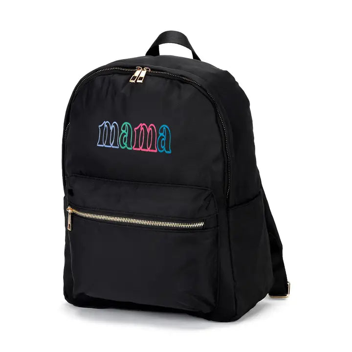 Hey Mama! Has anyone told you that you are doing a great job lately? Show everyone how proud you are of your job as a Mama with this trendy backpack! The adjustable shoulder straps make this backpack super easy to carry and it is a breeze to find just the right place for everything in the large interior compartment and exterior pocket. 11” L x 5” W x 13” H Water Resistant Twill Nylon Embroidered Design Gold Plated Metal Interior Lining Interior Zipper Pocket Outside Zipper Pocket Two Outside Open Pockets Adjustable Comfort Straps Designed and Embroidered in the USA Coordinating Cap Available
