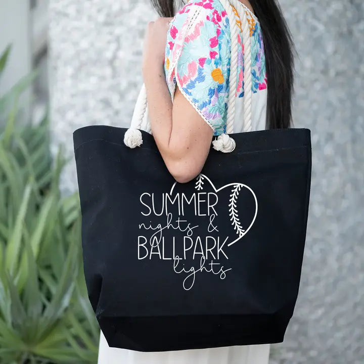 Ballpark Lights Baseball Castaway Tote #HP734-BLK-BPAR23