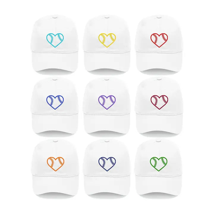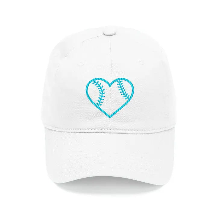 Heart Baseball White Cap #M190VL-WHT-AQHRTBB
