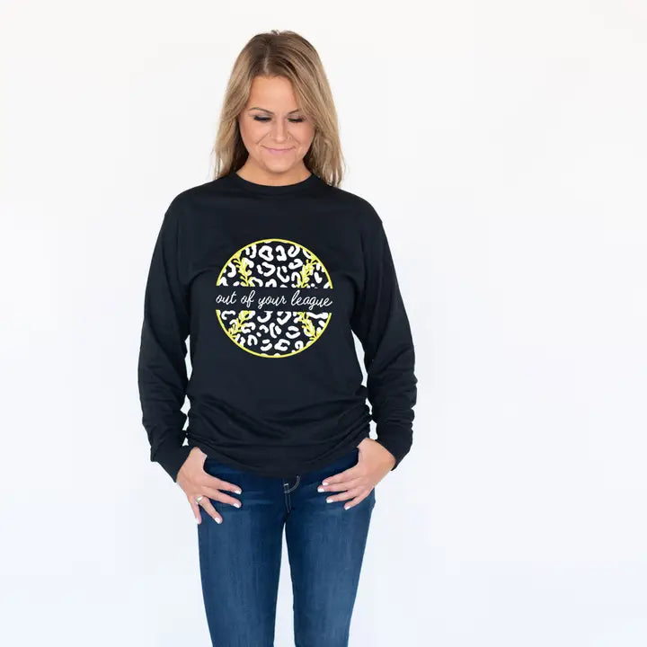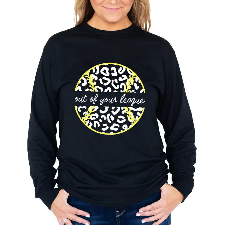 Out of Your League Softball Black Long Sleeve Shirt #HPLS-BLKXXL-LEAG24