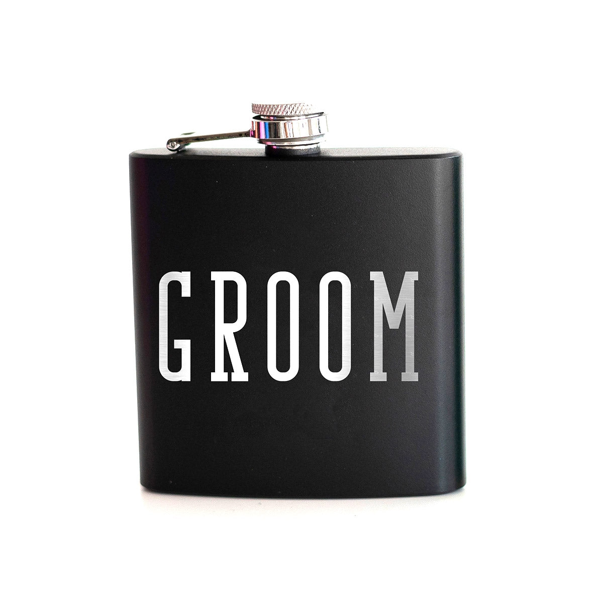 Perfect for any groom to be or bachelor party- this flask features an attached top that can't be misplaced and will add a fun touch in all your pictures!