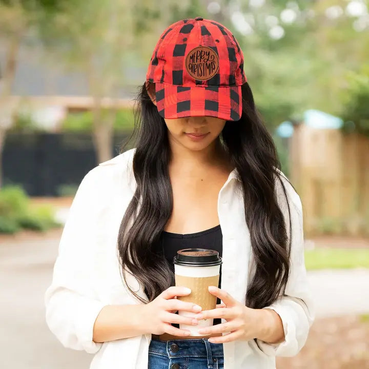 Merry Christmas Red Buffalo Check Cap #L190-RDCHK-P302-MC