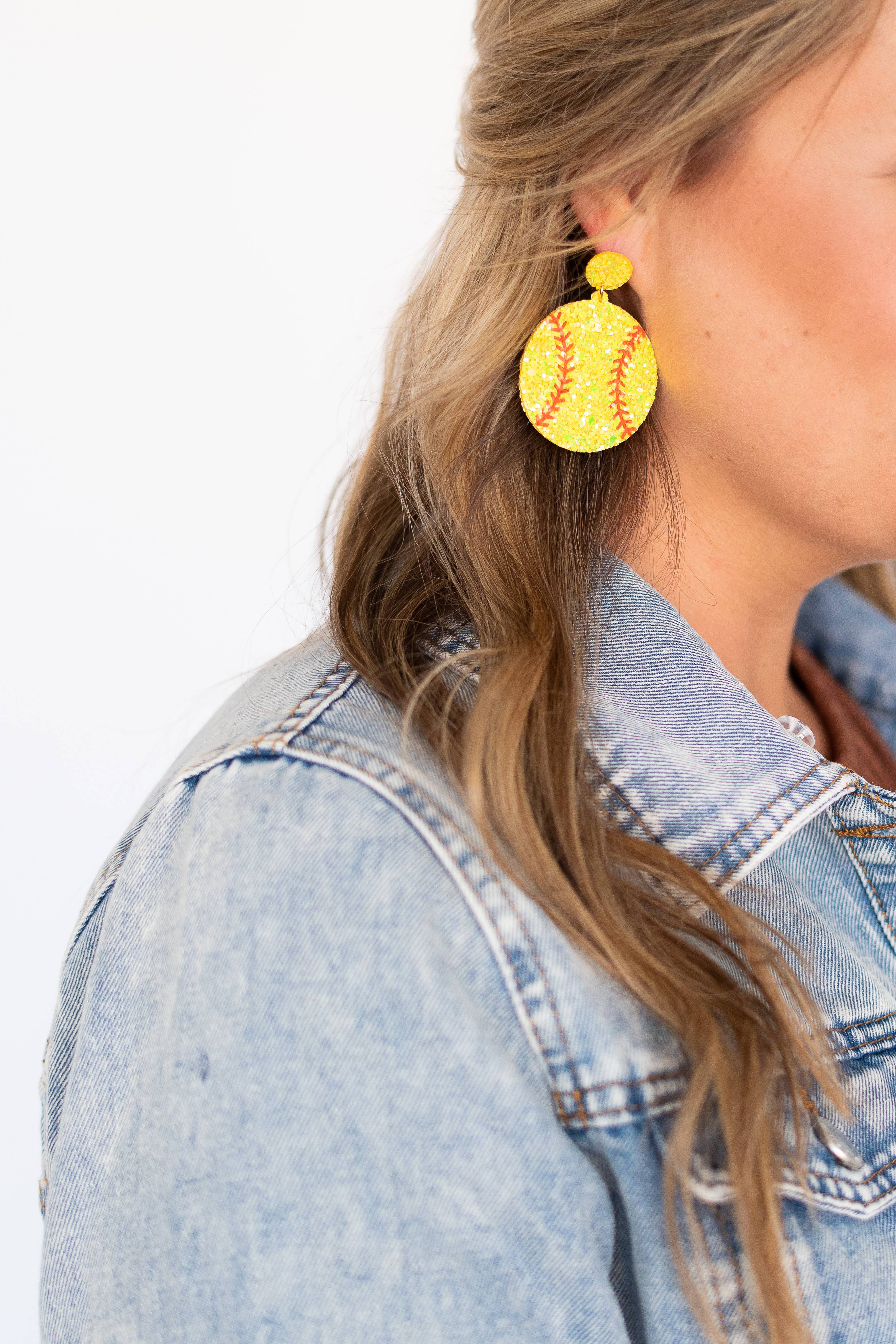 Game day ready, these fun earrings are the perfect addition to your ballgame attire! 2.5" Diameter Yellow Thick Glitter