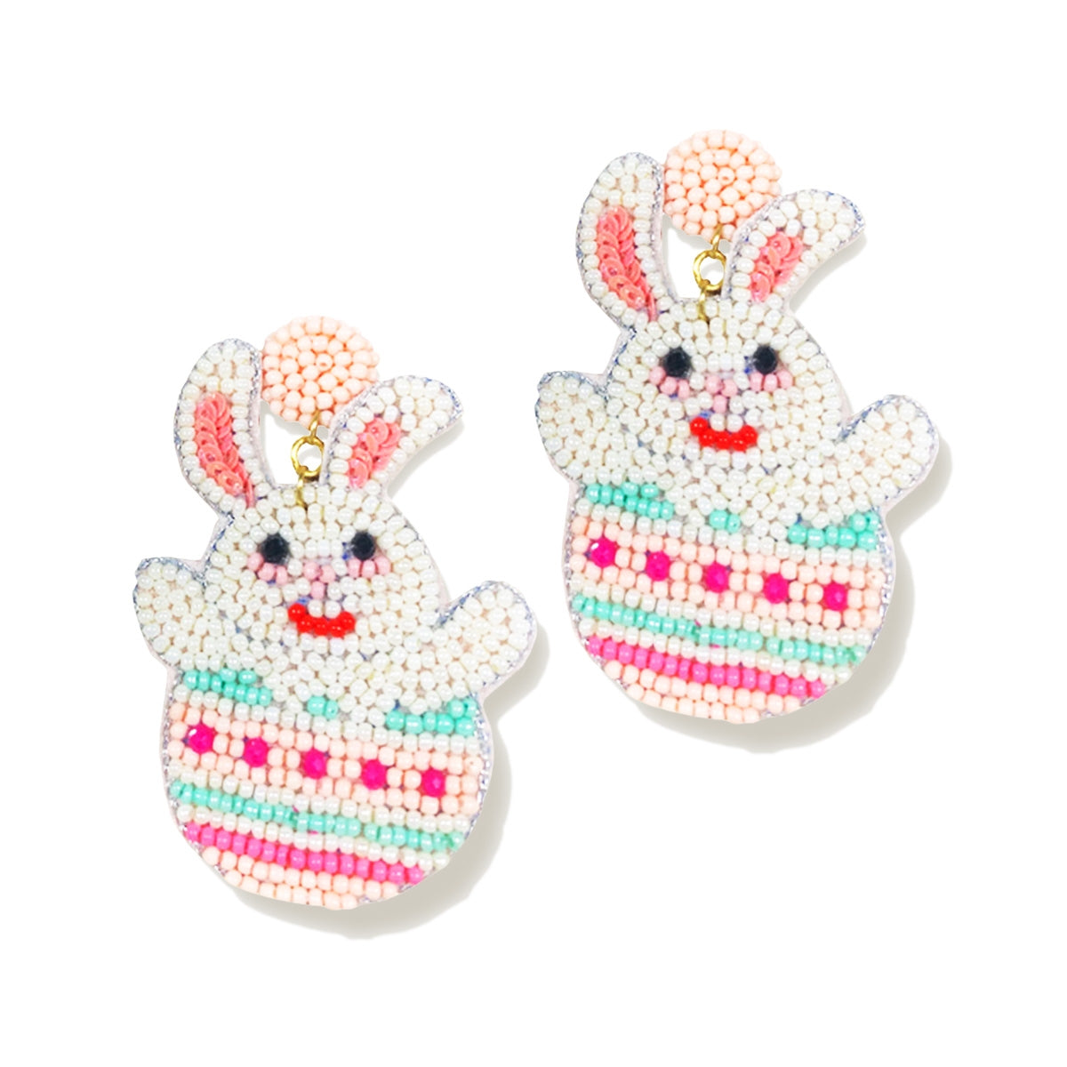 • Hippity hoppity, these fun statement earrings feature a beaded bunny design that will pair perfectly with any spring outfit! 2.75" H Beaded with Felt Backing Post Earrings