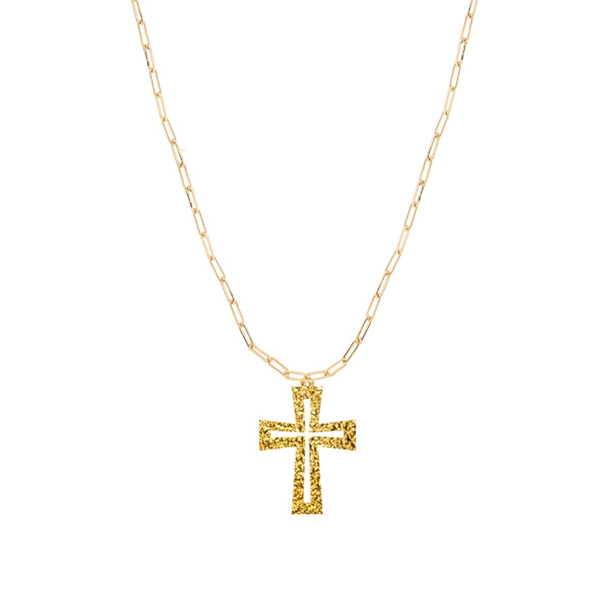 Textured Gold Cross Rhonda Necklace #ACN-215GD-CROSS23-TXGD