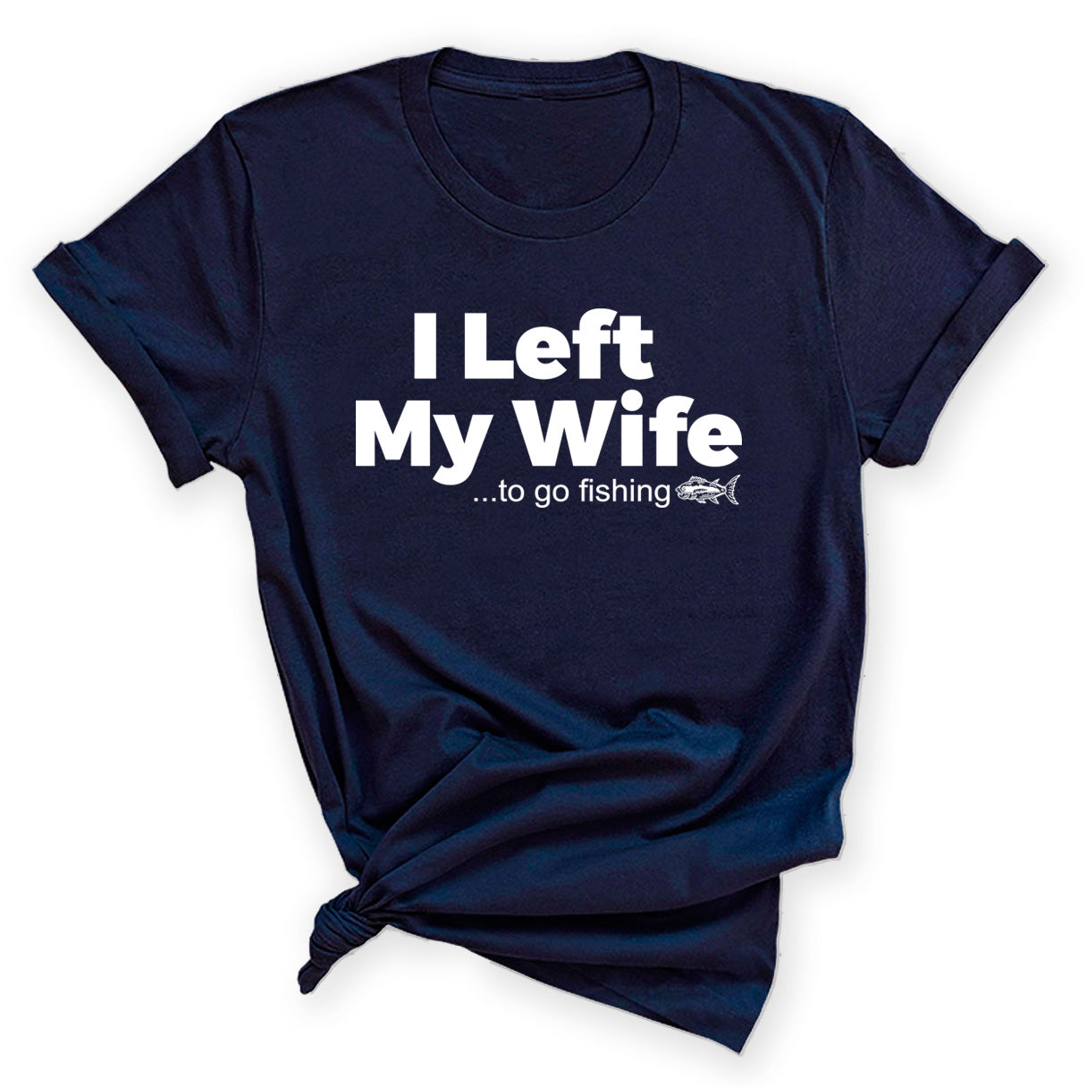 Tell them all why you left your wife. To some it may be sad, but to her, it would just make her pissed cuz you left to go fishing. A comfy T-shirt that looks great with any outfit and at any outing. The classic crewneck t-shirt paired with this fun design makes other comment ...guaranteed!