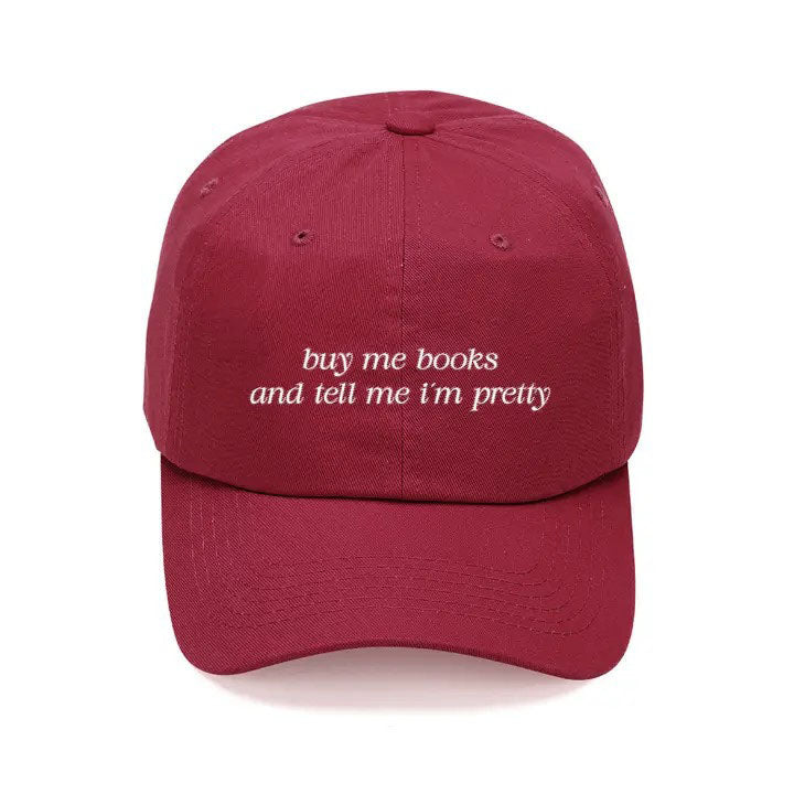 For the book lover with an ever-growing TBR list, this Buy Me Books cap is perfect for you! It has an adjustable strap with a metal clip that allows you to customize the fit.