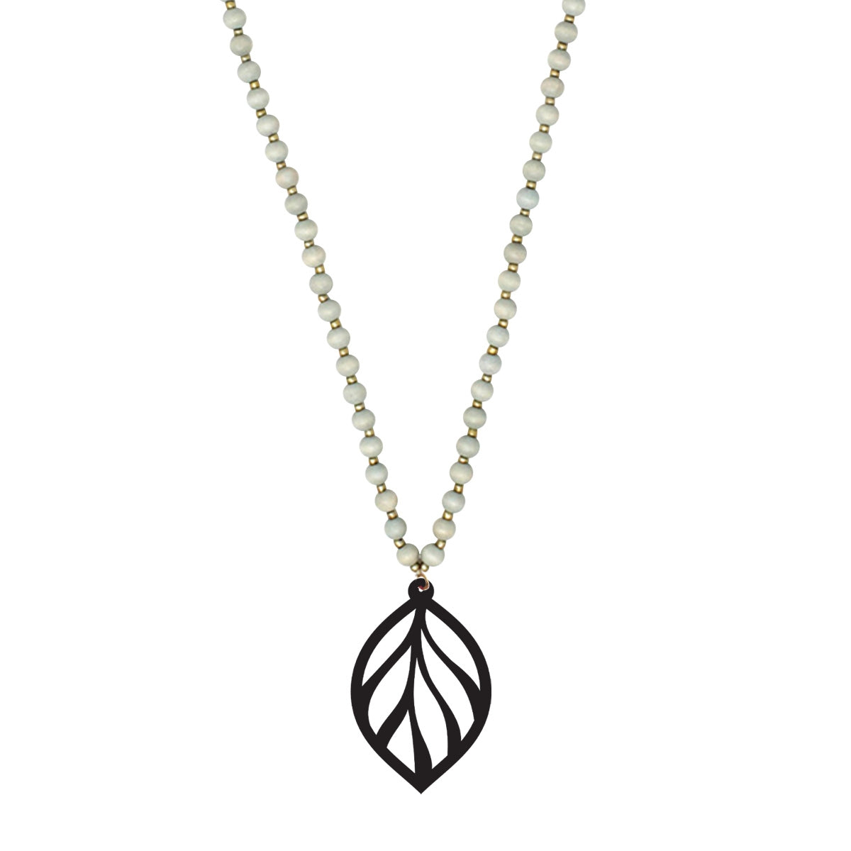 Black Leaf Sage Grey Jennifer Necklace #ACN-GRW-LEAF-BLK
