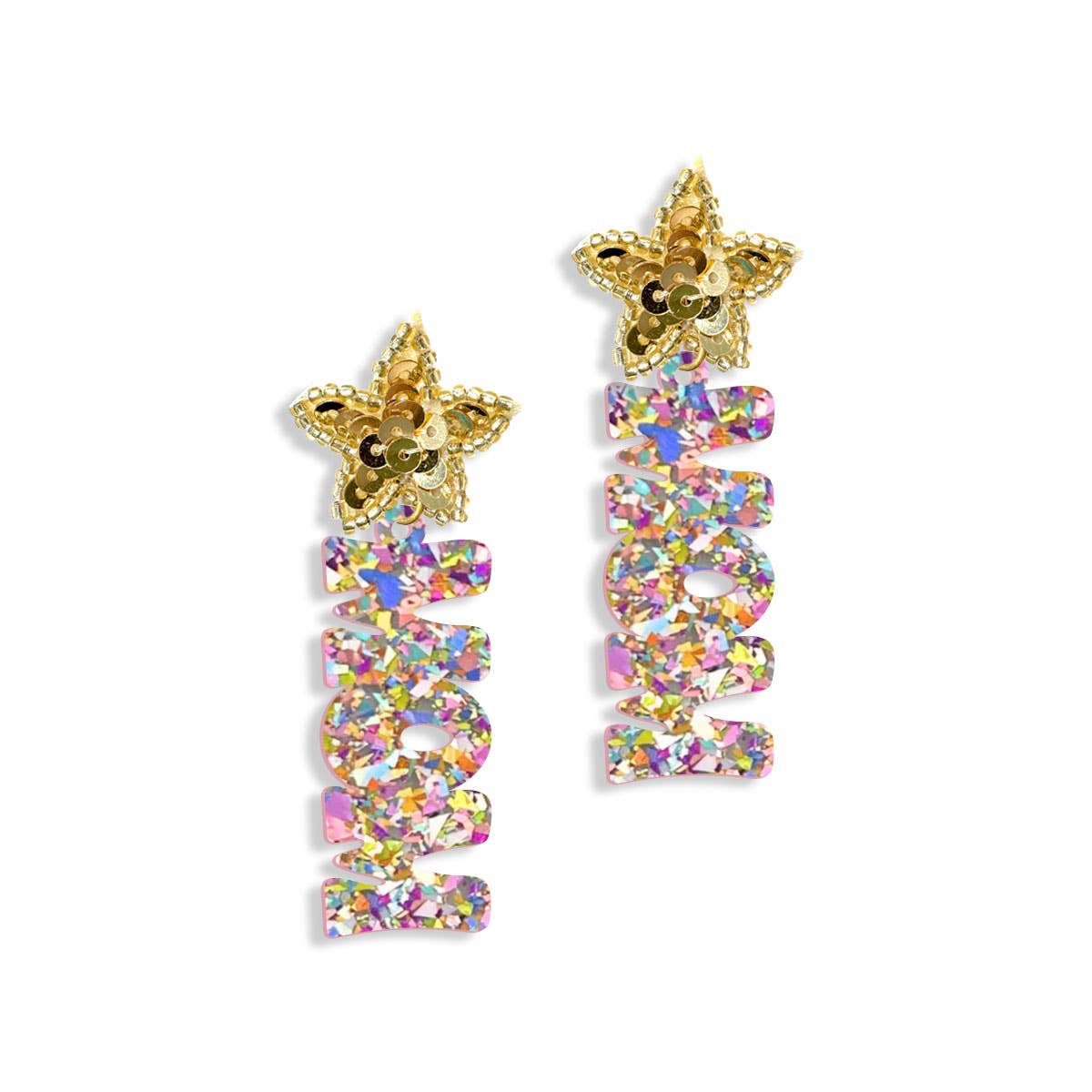 Multi Glitter Mom Earrings #ACE-896STR-MOM2-MLTGLT