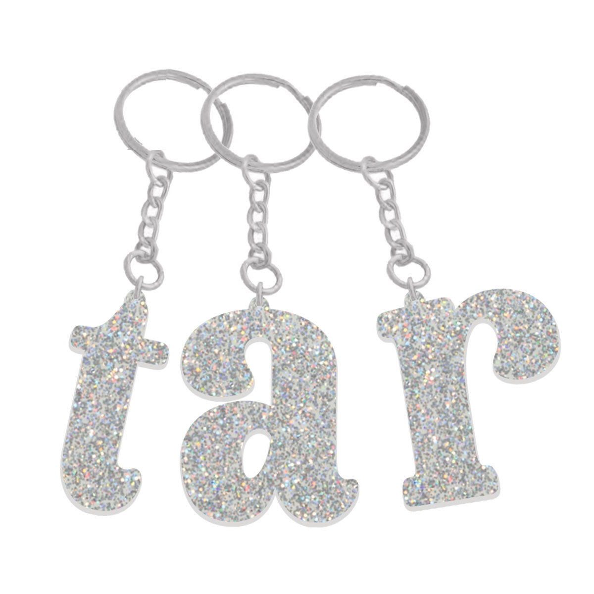 Single Initial Holographic Silver Glitter Keychain #ACK-HOLGL-SILVER