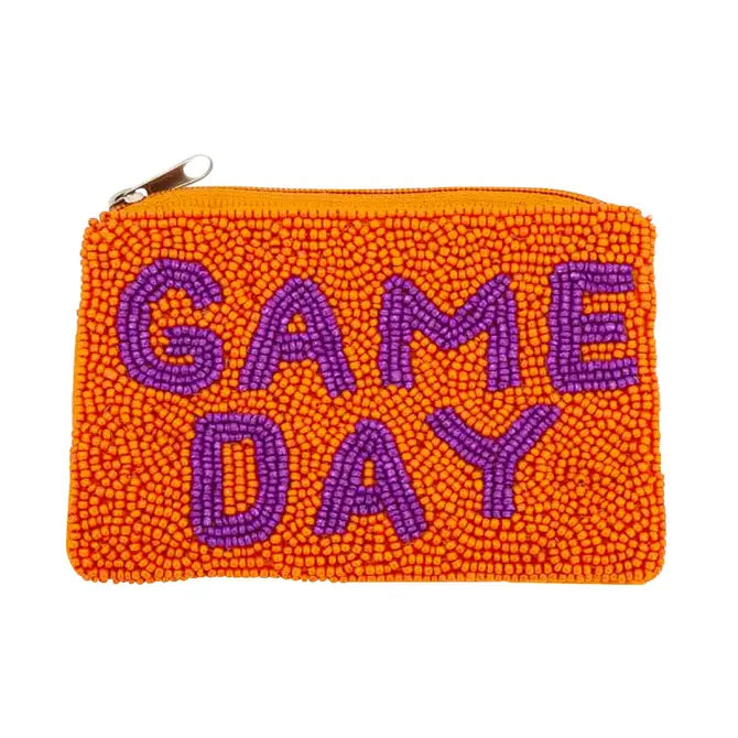 Orange & Purple Game Day Beaded Coin Purse #MNA0193-GDORPU