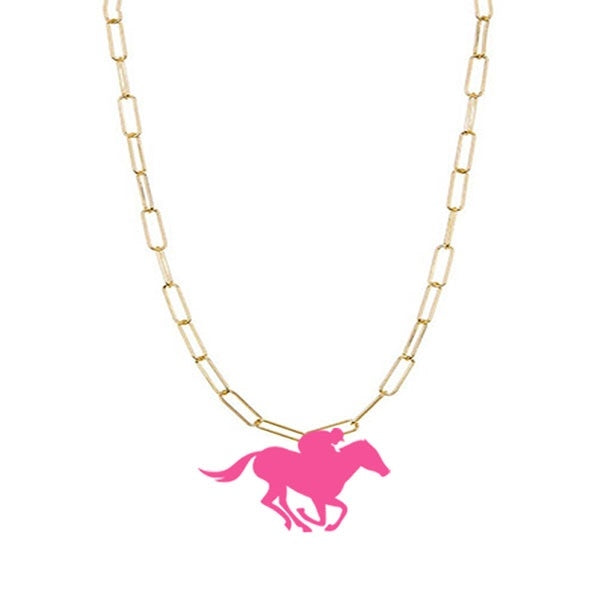 Hot Pink Derby Horse Gold Rhonda Necklace #ACN-215GD-DERBY-HTPK