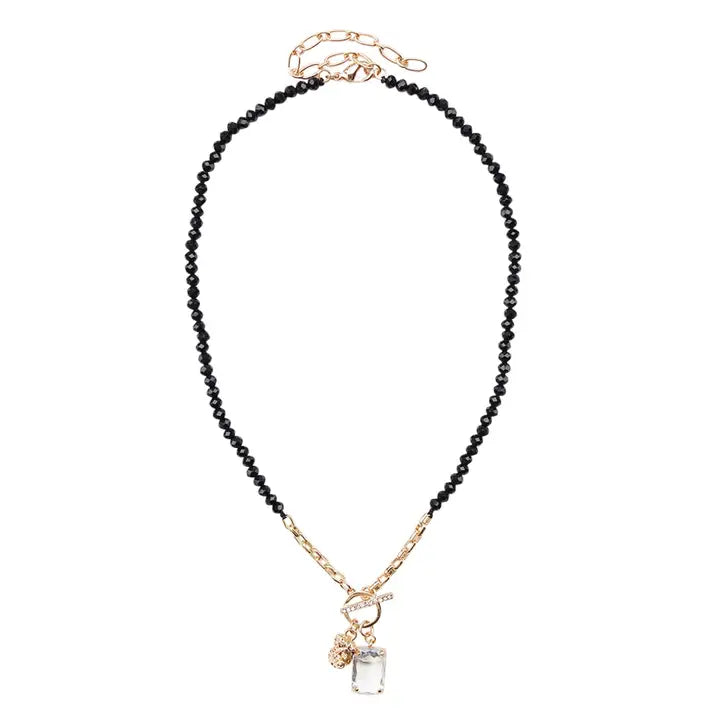This necklace will quickly become your go-to accessory, it features a classy strand of iridescent beads with rhinestone accents that will perfectly pair with your favorite outfits. Adjustable16"-19" Black Iridescent Beads Rhinestone & Crystal Accents Toggle Clasp Detail in Front Gold Toned Metal