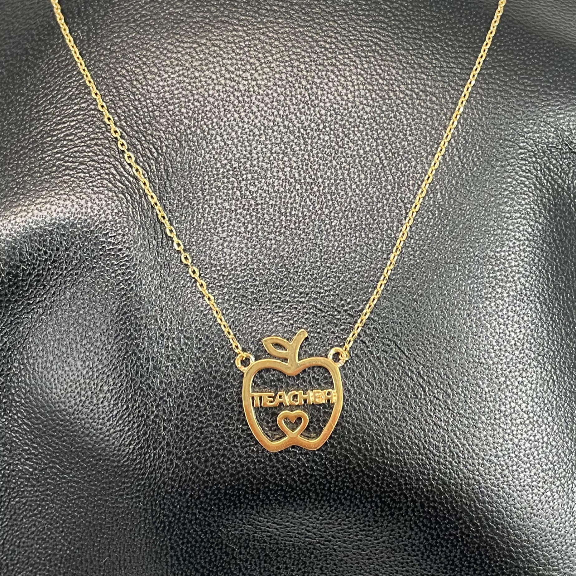 Apple for the Teacher Necklace #EN0132G-GD-TEACH