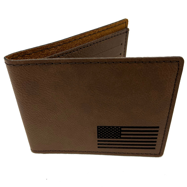 American Flag Dark Brown Bi-Fold Wallet #LMW1901N-FLAG
