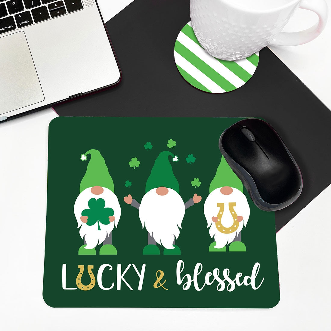 Gnome Lucky & Blessed Desk Set #SDESK-NSTPATGNM-STGRN