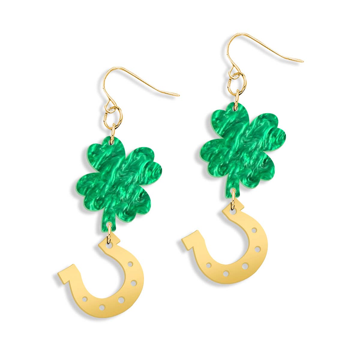 Green & Gold St. Patrick's Earrings #ACE-300GD-LUCK-GRNGD