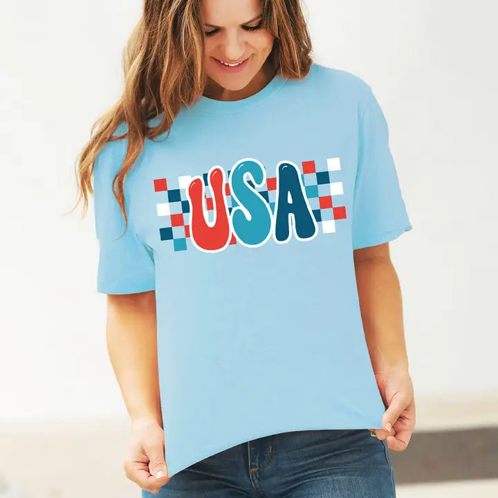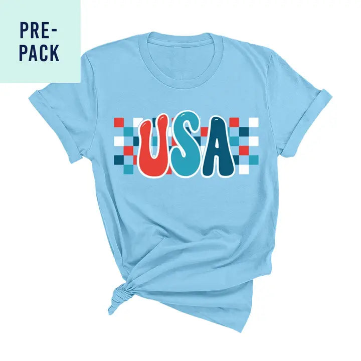 Checkered USA Ocean Blue T-Shirt 9 pc Set #PACK-OBLU-CHKUSA24