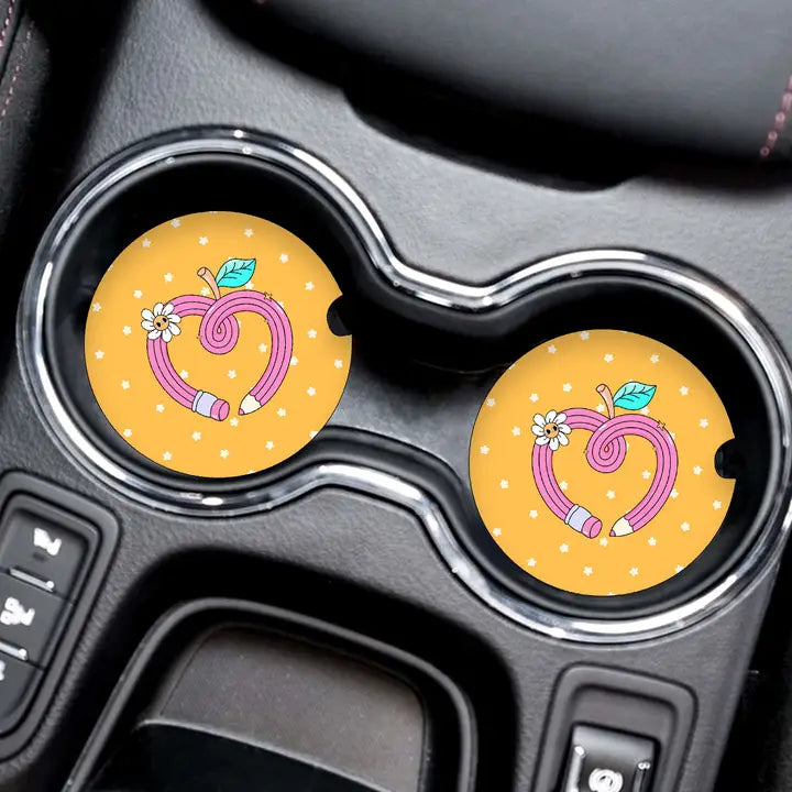 Apple Pencil Heart Car Coaster 2 pc Set #SPACK-CC132-APHRT